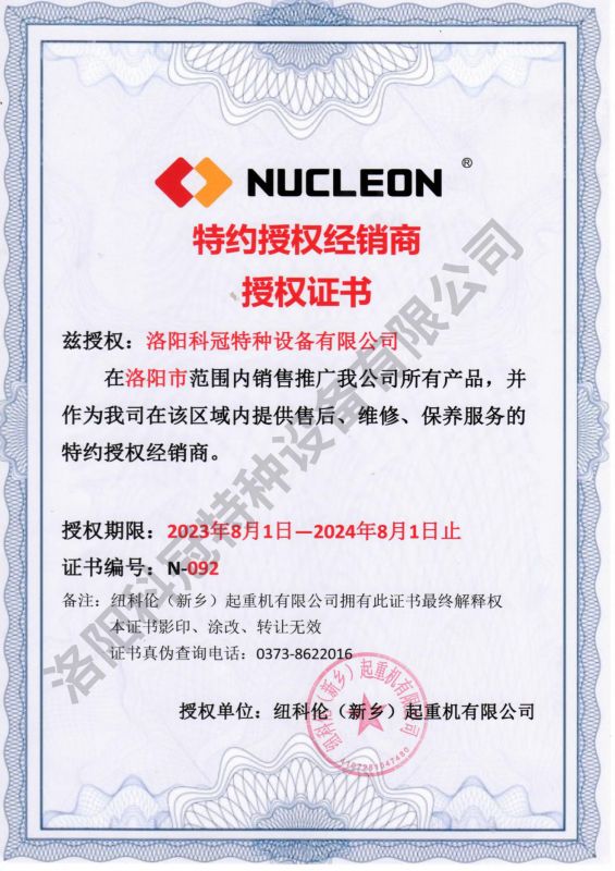 公司是紐科倫起重品牌在洛陽的銷售及售后代理